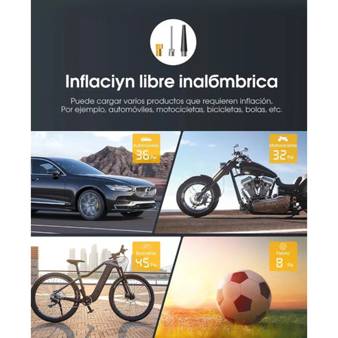 Aplicable para: Carros, Bicicletas, Motocicletas, Inflar Balones, etc.